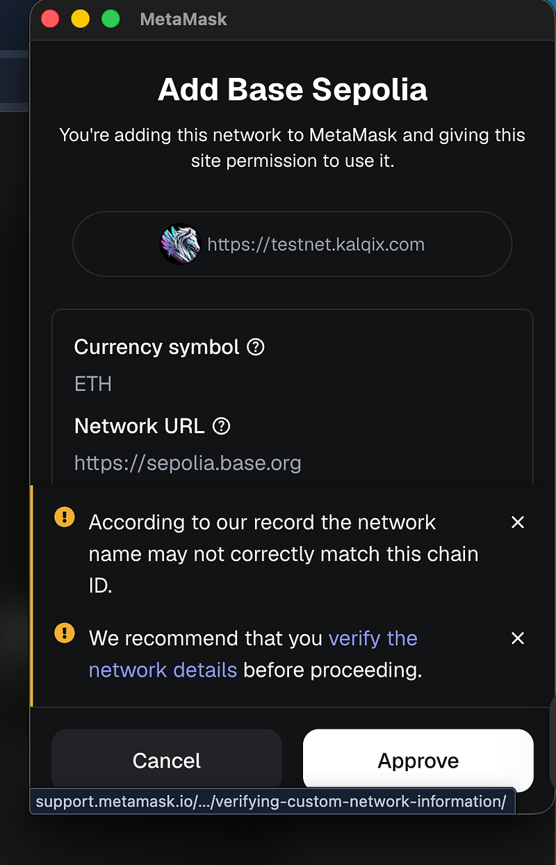Step 4: If Base Sepolia/Citrea is not already added, it will prompt you to add it automatically.